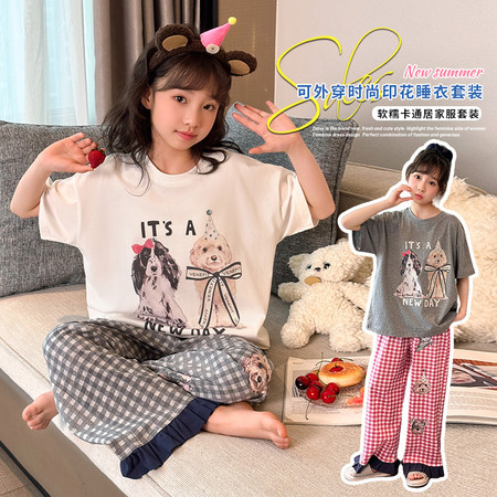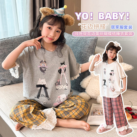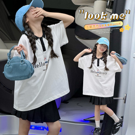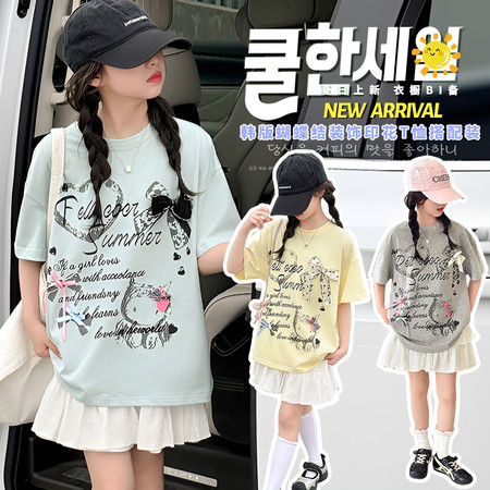 女童短袖蝴蝶结印花T恤搭配蛋糕裙新款夏装