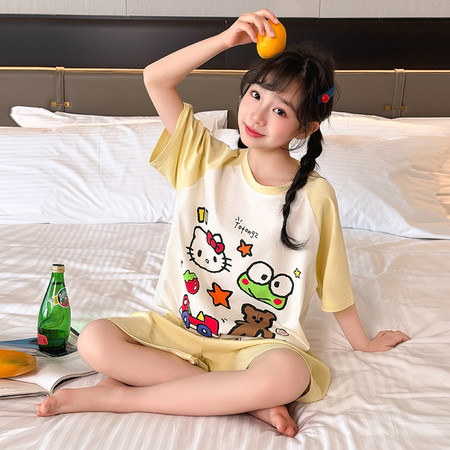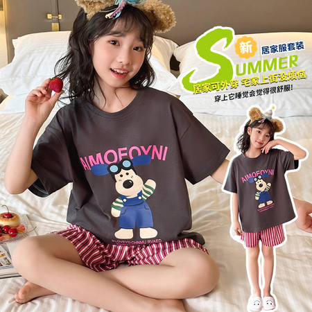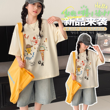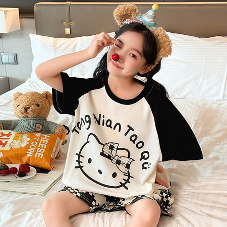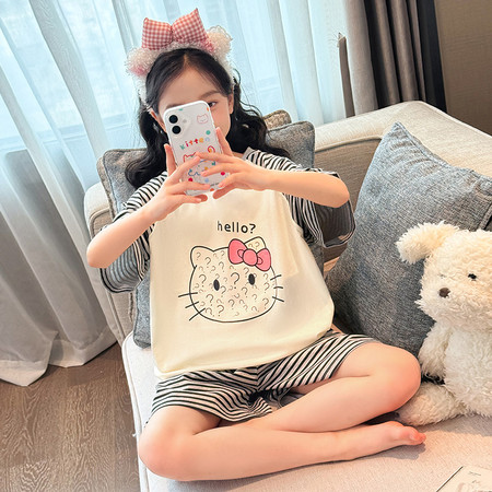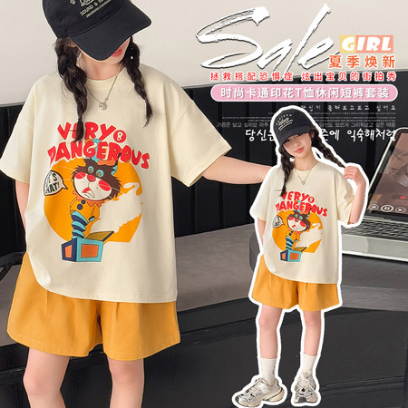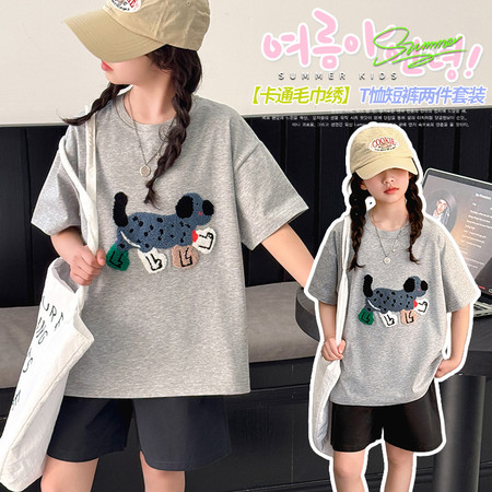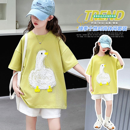 白鹅T恤棉布短裤套装夏装新款女童夏款