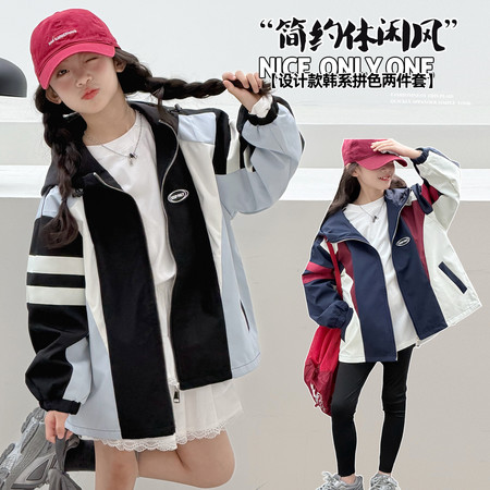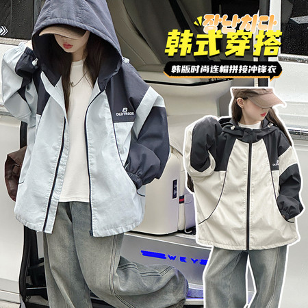 26年春装新款学院风拼色连帽冲锋衣外套春秋外套