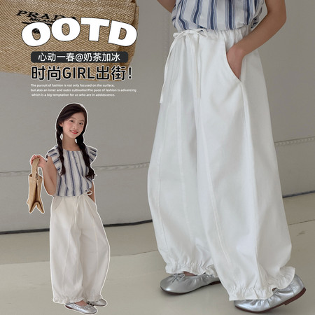 26年春装新款水洗棉布花边灯笼裤春秋女生