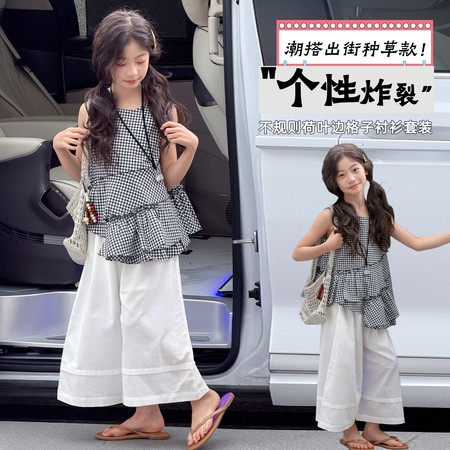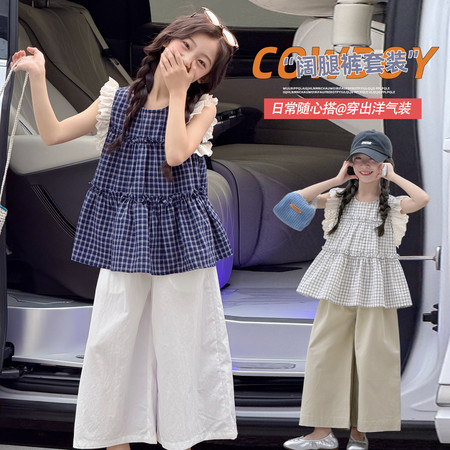 花边格子背心阔腿裤套装26年夏装新款夏季